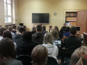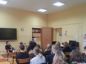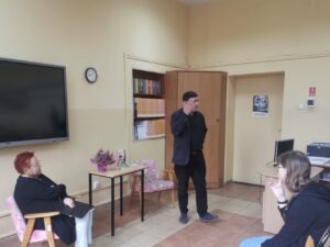 Włodzimierz Ignasiński – człowiek kultury i pisarz- gościł w bibliotece szkolnej w ramach NPRC. Uczniowie klas pierwszych technikum mieli okazję poznać piękno słowa w wykonaniu Włodzimierza Ignasińskiego oraz zapoznać się z ofertą biblioteki.